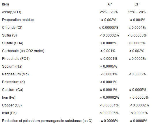 | 1.06073.258 | Ammonia solution | Specific 20 kg /drum |