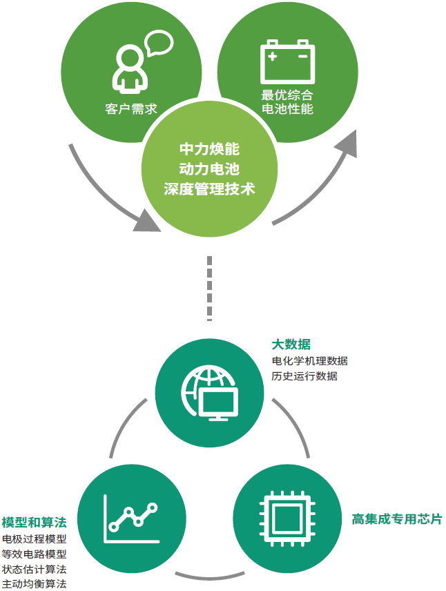 珠海中力新能量整合其在锂离子电池测量、 估计、 调整、 维护和管理等领域的技术成果, 将电池检测、 评估、 维修、 实时调整、 个性设计优化和配套保障等服务打包, 推出锂离子电池返梯级利用解决方案——中力焕能服务。