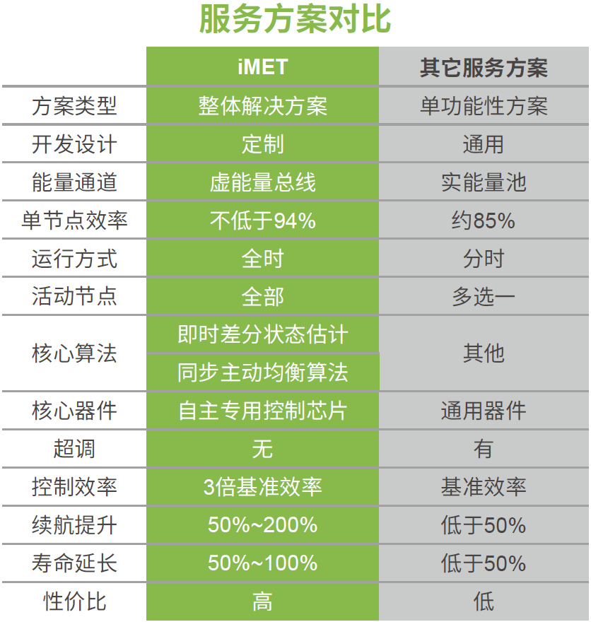 相较其他主动均衡系统,iMET的均衡能力、 精度、 效率都有实质性优势。