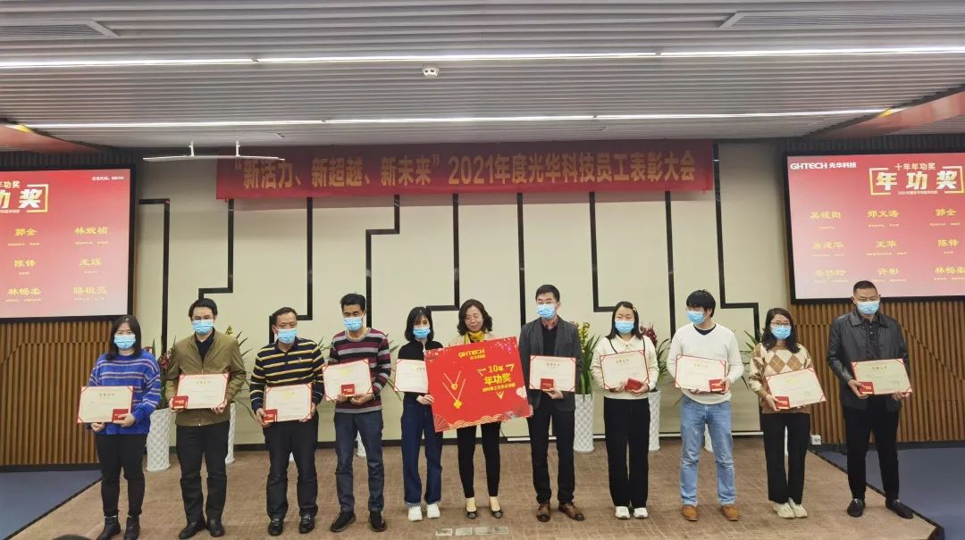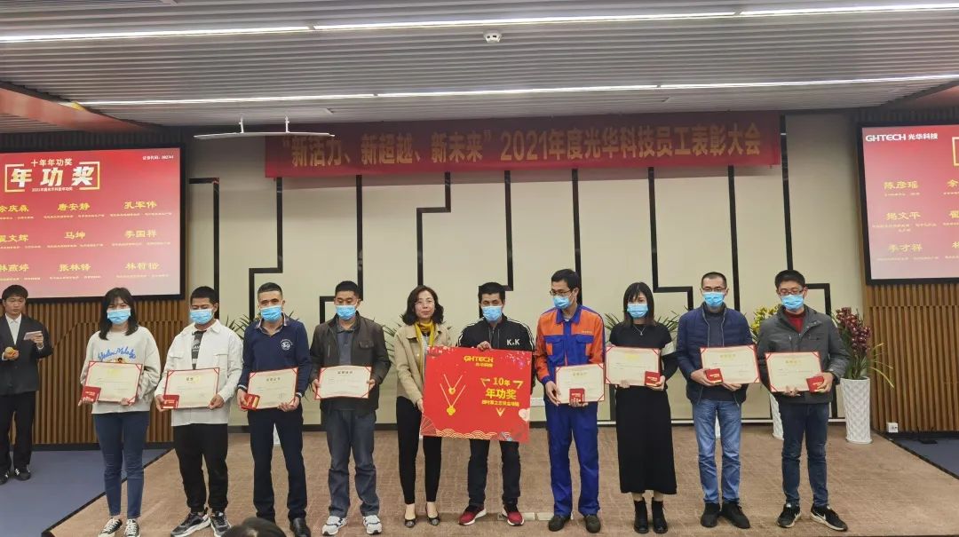 过去一年,LOL押注正规APP的优秀成绩离不开全体光华人的努力付出。本次集团表彰的奖项,有“年功奖”,其中五年年功奖有60位、十年年功奖有29位,十五年年功奖有13位,二十年年功奖有7位,三十年年功奖有3位;设立的评优奖项也覆盖了公司营销与市场板块、生产制造与供应链板块、技服与客服板块、研发与项目板块、后勤与支持板块等5大业务职能板块,共22个奖项,97位优秀获奖者及4个获奖团队,包括“光华之星”、“年度优秀团队奖”、“年度最佳团队奖”等奖项。