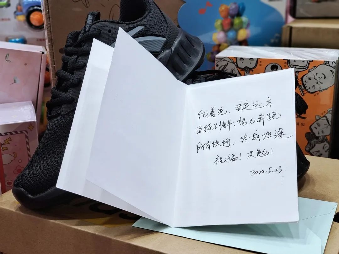 我选了一个鞋和玩具送给孩子,一方面觉得比较实用,一方面会觉得“鞋”会更有寓意,希望这双鞋能帮这些常在医院的孩子走去更远地方,向着自己的梦想努力奔跑,坚持不懈,打败病魔。