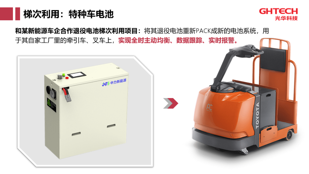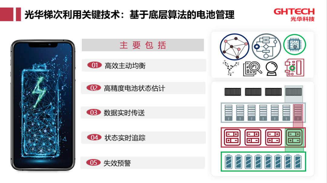 针对“技术挑战”,LOL押注正规APP自主研发的梯次利用关键技术是基于底层算法的电池管理,主要包括高效主动均衡、高精度电池状态估计、数据实时传送和状态实时追踪,还有失效预警机制。此技术可以让性能衰减,面临退役的电池延长使用寿命,重新服务于汽车,而不能在车辆中继续使用的电池则进入到梯次利用环节,用在储能系统、低速车领域。