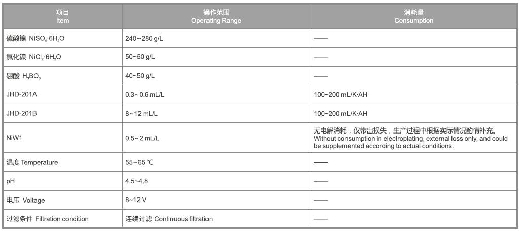 JHD-201B:俗称辅光剂,也称柔软剂。消除除镀层内应力,促进镀层均匀分布。201B不足时,低电流密度区发暗,镀层脆性大;201B过量时,可能导致出光速度慢;