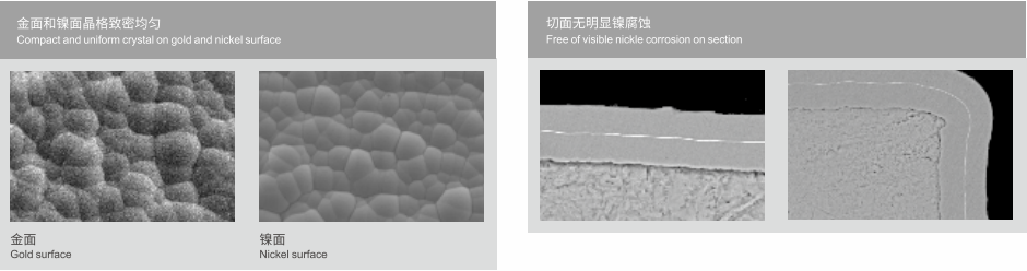 化学沉镍金是PCB最终表面处理工艺一种,用于在金属铜面沉上一层镍和金,属于中磷和中高磷系列,具有优异的可焊性、抗腐蚀性和耐磨性,是专门为PCB最终表面设计的理想工艺。