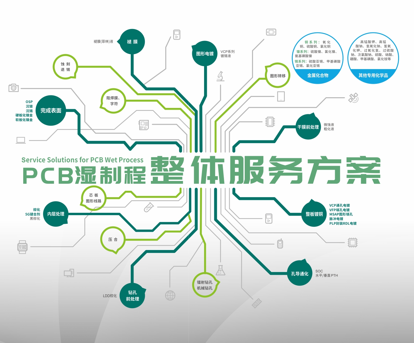 在PCB领域,LOL押注正规APP为业界提供深度配套的PCB湿制程生产技术,提供全方位的化学品服务方案,产品包括
